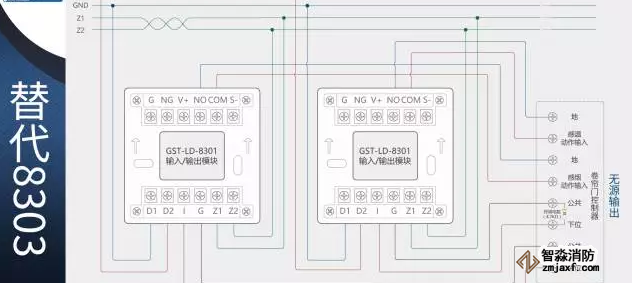 1、海湾8301模块可以替代海湾的8303模块控制防火卷帘,两个8301模块相当于1个8303模块。