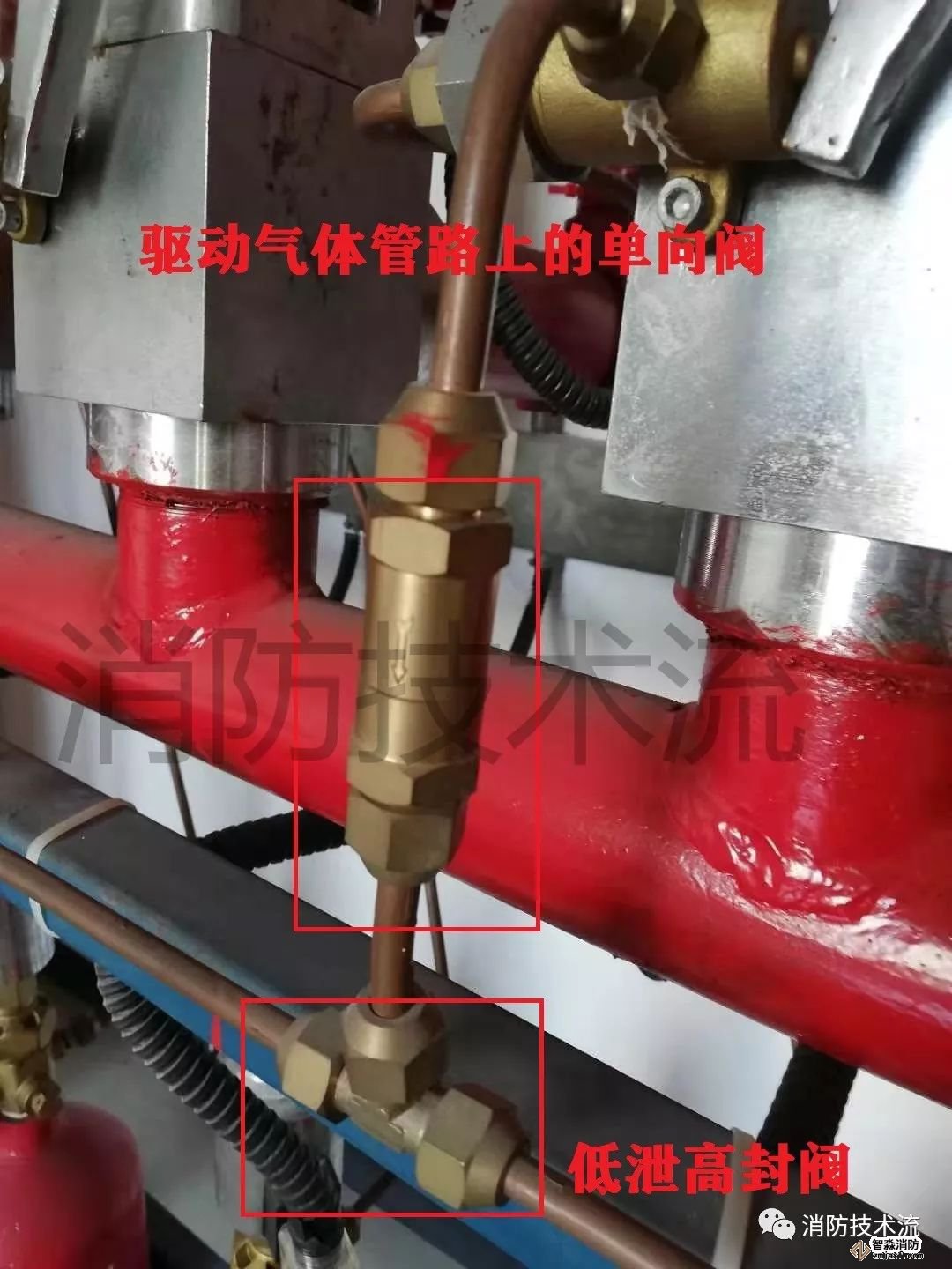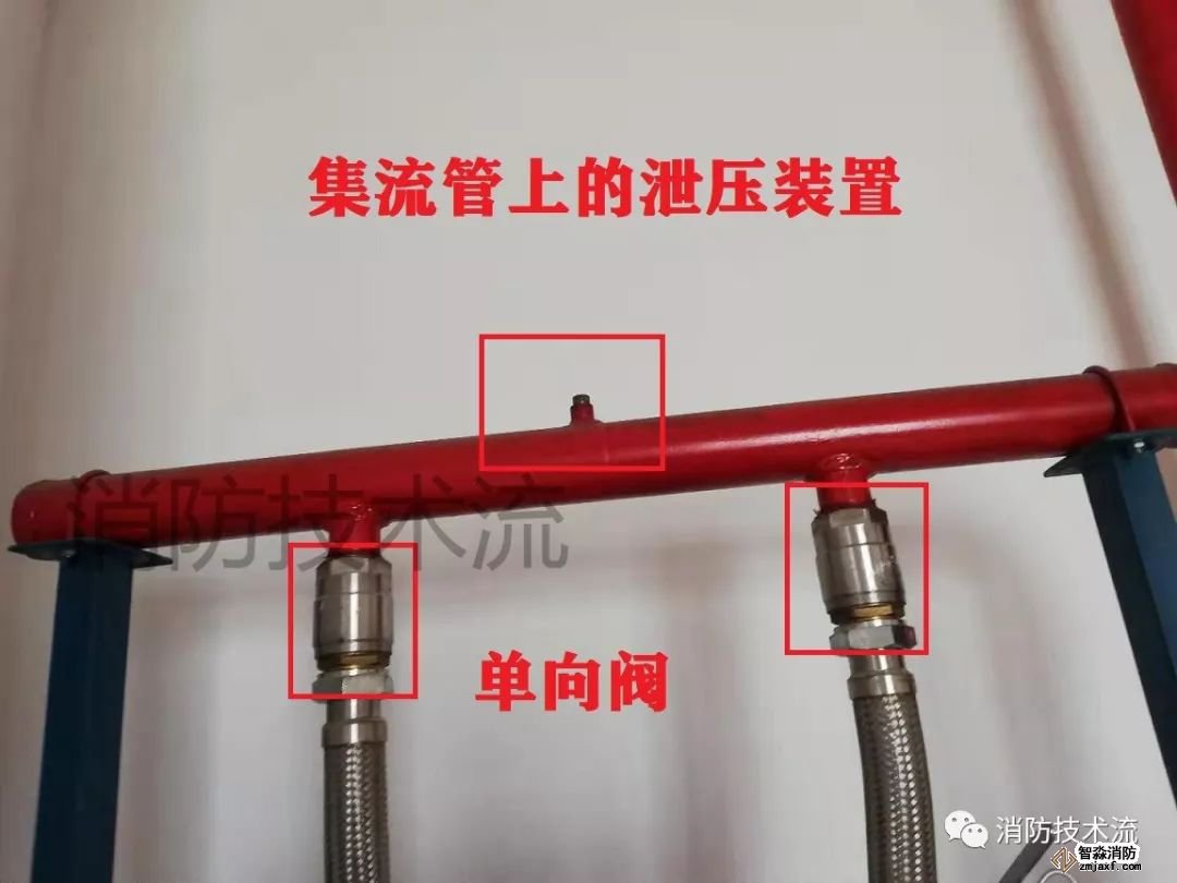 图四:灭火剂释放管路上的单向阀及集流管上的泄压装置