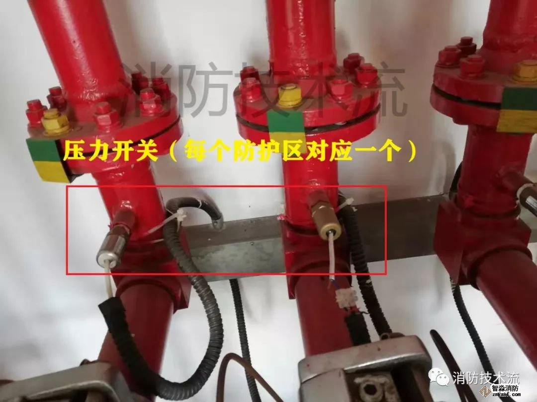 图八:灭火剂释放管路上的压力开关,当气体释放时气体压力使压力开关动作发出气体释放信号