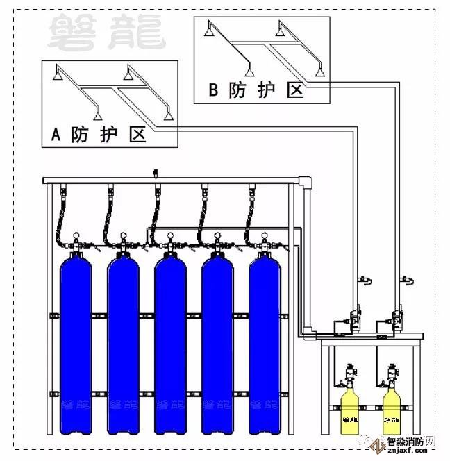 2、使用温度低于临界温度,但饱和蒸气压较高的灭火剂,可以依靠自身压力完成灭火剂输送,也可以采用自压式气体灭火系统。