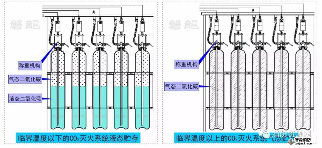 示例:二氧化碳的临界温度31.26℃,20℃时的饱和蒸气压5.7MPa,属于自压式气体灭火系统。