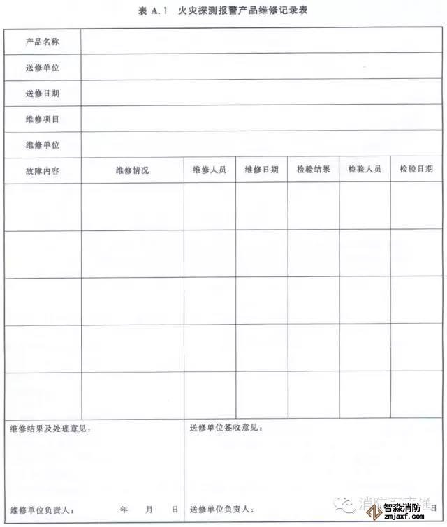 3.1.6承担维修的企业应做好维修记录,与产品使用或管理单位各执一份,并保存至该产品报废。火灾探测报警产品维修记录表的格式参见附录A。