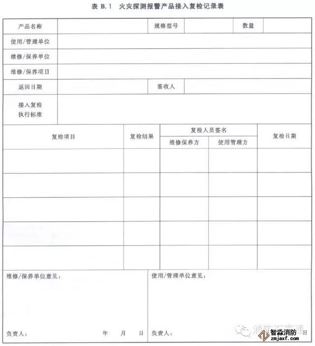 火灾探测报警产品接入复检记录表的格式见表B.1。